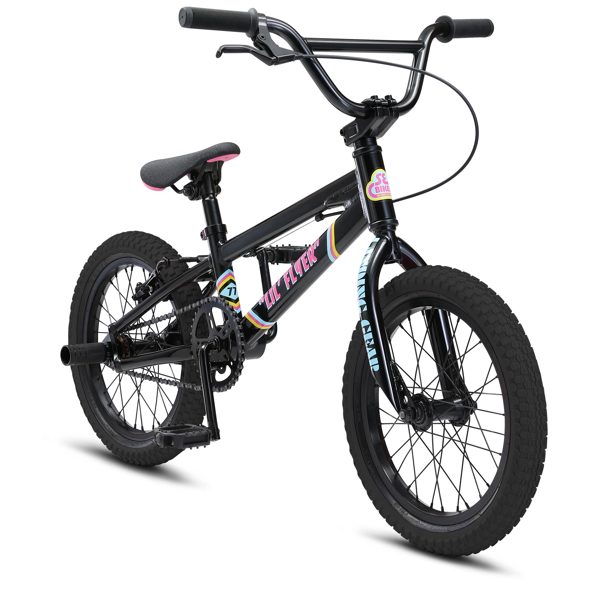 Lets get kids on bikes is more than just a motto for us here at SE Bikes. We want kids to fall in love with BMX early on and experience a life-long passion for the sport. And the 16" LiL' Flyer is the perfect bike to spark a youngsters interest. This lightweight aluminum bike comes in two wildly fun colorways and comes equipped with Wheelie Pegs for kids to have fun on. The kids are the future; lets get them on bikes!